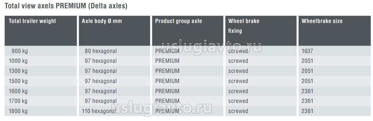 Из каталога следует, что дельта-осей грузоподъемностью выше 1800 кг АЛ-КО не производит. Тип тормозной системы у моей оси 1700 кг и оси 1800 кг один 2361