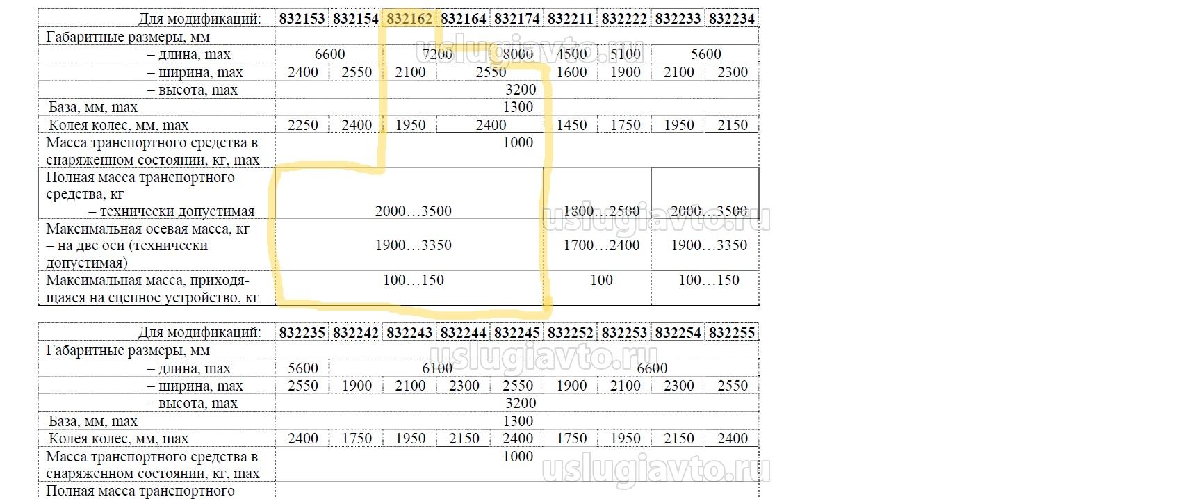 - максимальная осевая масса на две оси (технически допустимая) - 1900-3350 кг.