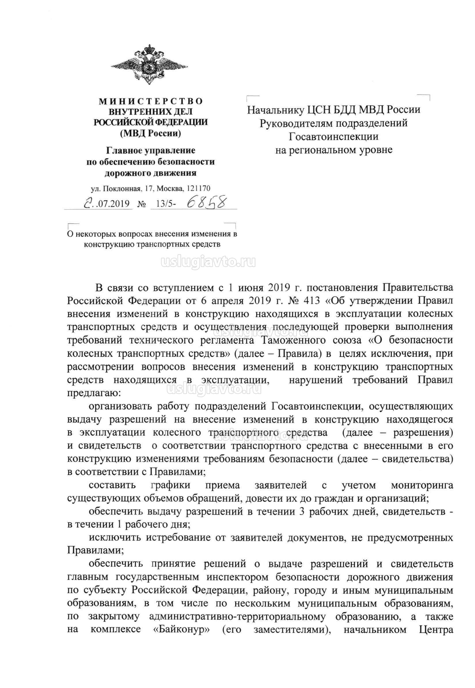 , о которых нет ни слова в 413 постановлении. Мне кажется было так: в апреле выходит постановление, о том что 1.06.2019 должен вступить регламент ГИБДД по внесению изменений. ГИБДД вспоминает, что у них еще нет утвержденного регламента, а срок всего месяц