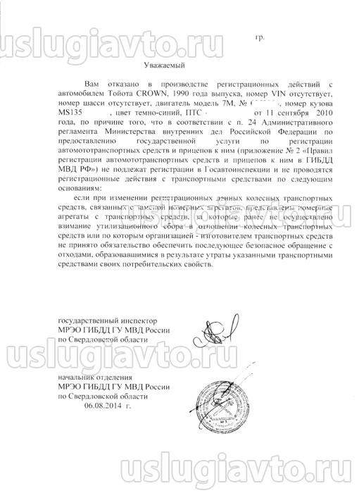 Ой сколько матов чуть не вышло из моих уст когда я прочитал этот отказ... Посмотрите во первых судебную практику по утилизационному сбору, нужно быть последним ... что бы дать в 2014 году подобный отказ. Идите в суд и побеждайте вот и все что с этим делать. В суд предъявите разъяснение с этой ссылки по уплате утилизационного сбора. viewtopic.php?f=17&t=3676