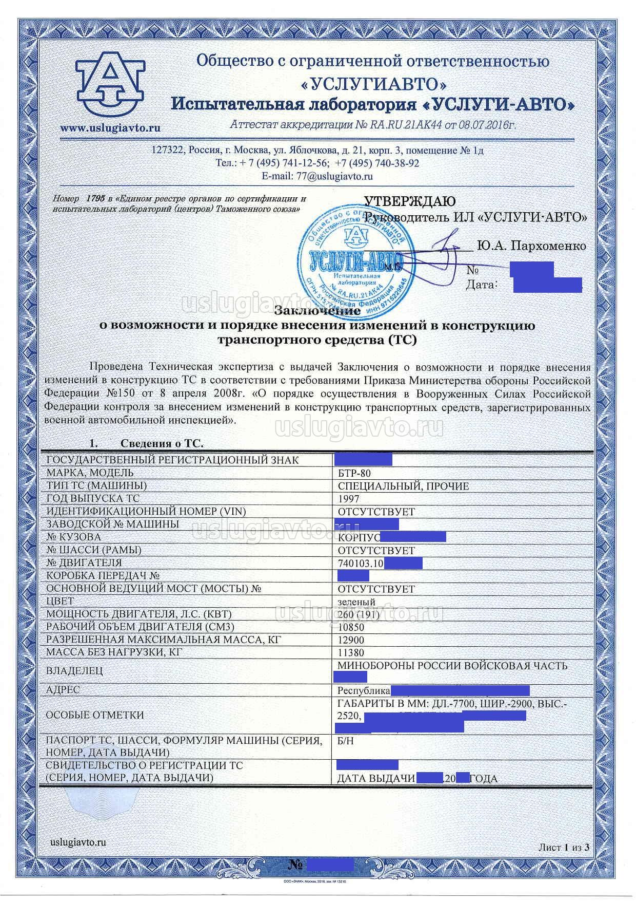Примечание: Экспертиза проведена для нужд Военной автомобильной инспекции (ВАИ).