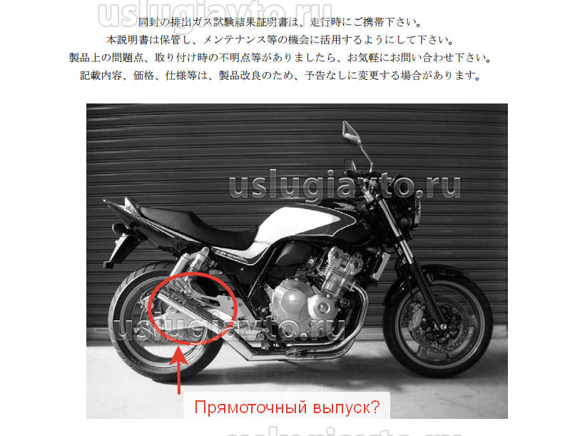 6) По ссылке оригинальный японский сертификат. Для регистрации в ГИБДД система выпуска должна быть сертифицирована для этого двигателя и иметь российский сертификат.