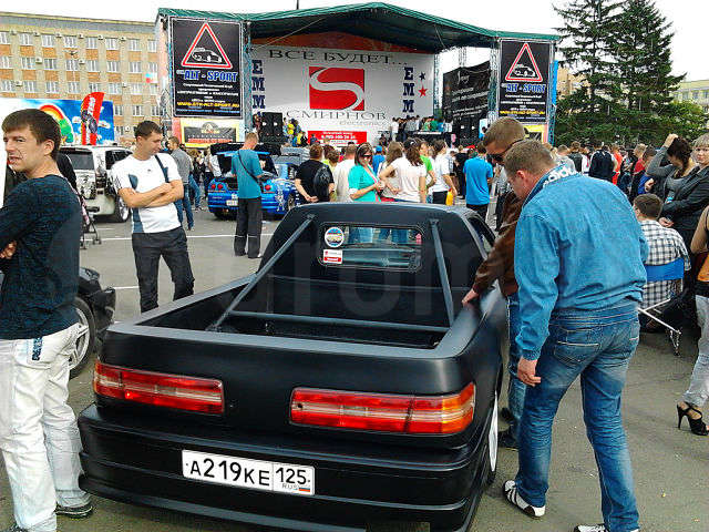 - Обрезана крыша над задними сидушками по самы двери, часть багажника так же удалена, задние двери заварены, поставлена метал. перегородка за передними сидушками, из труб и листового металла сделана площадка кузова;