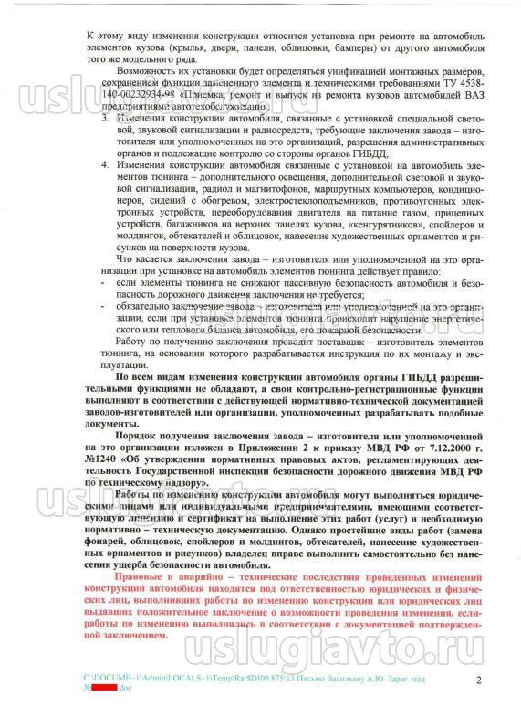 Вернуться в Внесение изменений в конструкцию легкового автомобиля (категория «В»)