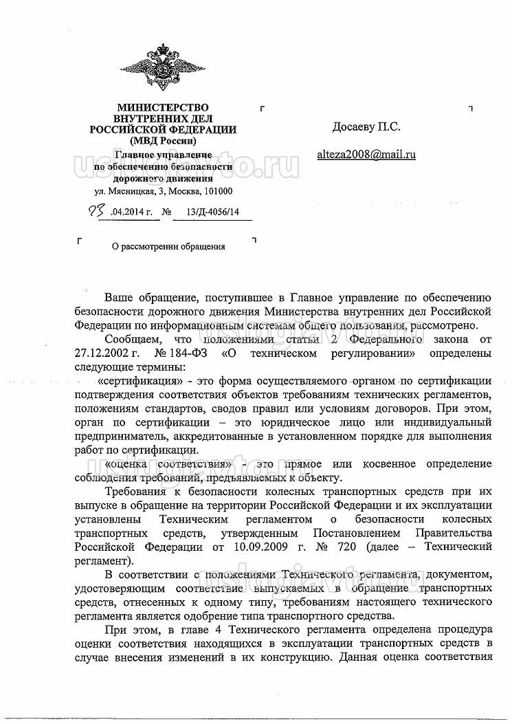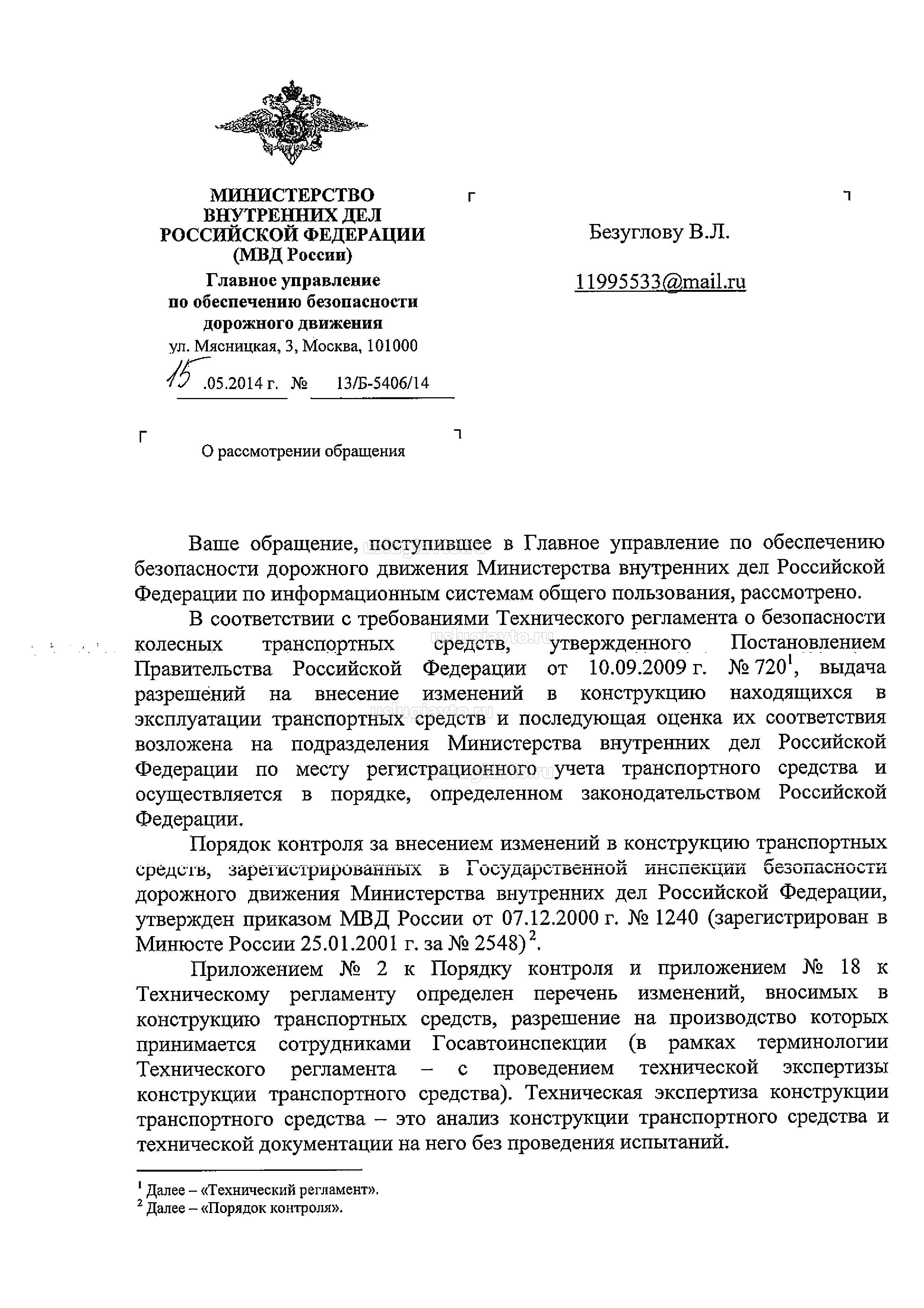 г) к изменению конструкции зарегистрированных в Государственной инспекции безопасности дорожного движения Министерства внутренних дел Российской Федерации автомототранспортных средств и прицепов к ним;