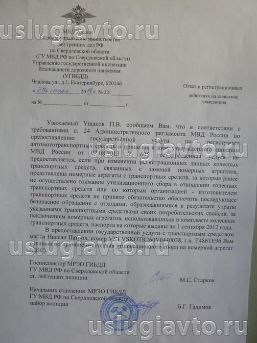 Ой сколько матов чуть не вышло из моих уст когда я прочитал этот отказ... Посмотрите во первых судебную практику по утилизационному сбору, нужно быть последним ... что бы дать в 2014 году подобный отказ. Идите в суд и побеждайте вот и все что с этим делать. В суд предъявите разъяснение с этой ссылки по уплате утилизационного сбора. viewtopic.php?f=17&t=3676