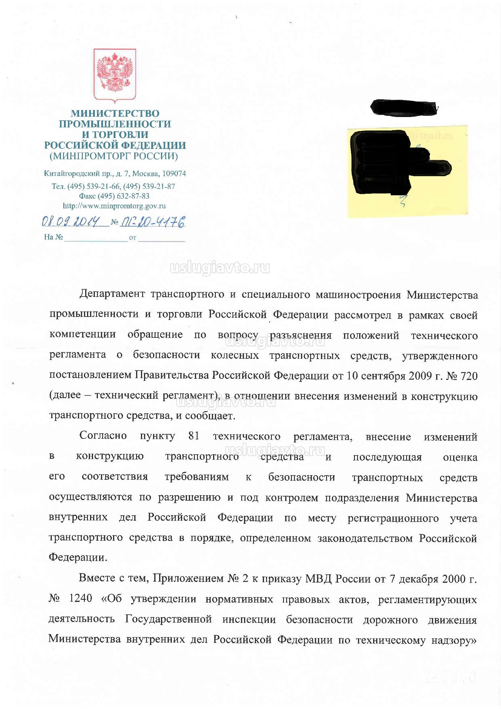 г) к изменению конструкции зарегистрированных в Государственной инспекции безопасности дорожного движения Министерства внутренних дел Российской Федерации автомототранспортных средств и прицепов к ним;