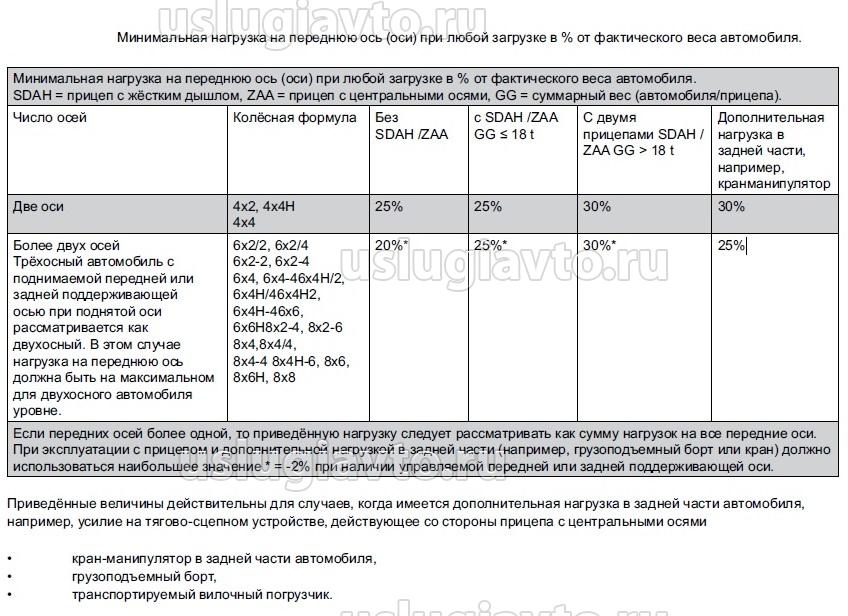 Минимальная нагрузка на переднюю ось