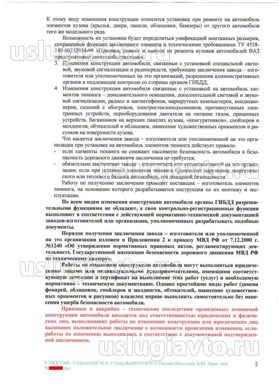 Подскажите! есть ли у кого письмо главного конструктора "АВТОВАЗ" начальнику ГУ ГИБДД МВД России, в котором указаны допустимые изменения, которые позволительно вносить в конструкцию автомобиля! ???? и вообще, письма АВТОВАЗа, касаемо замены номерных агрегатов!