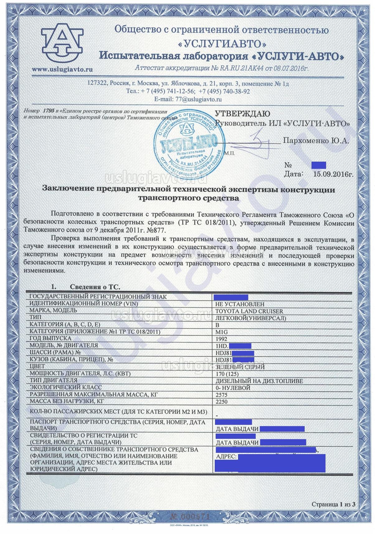 Основные требования к установке дополнительного оборудования (обвес, лифт и т.д.) или Регистрация Внедорожного Тюнинга (Пример выполненной работы)