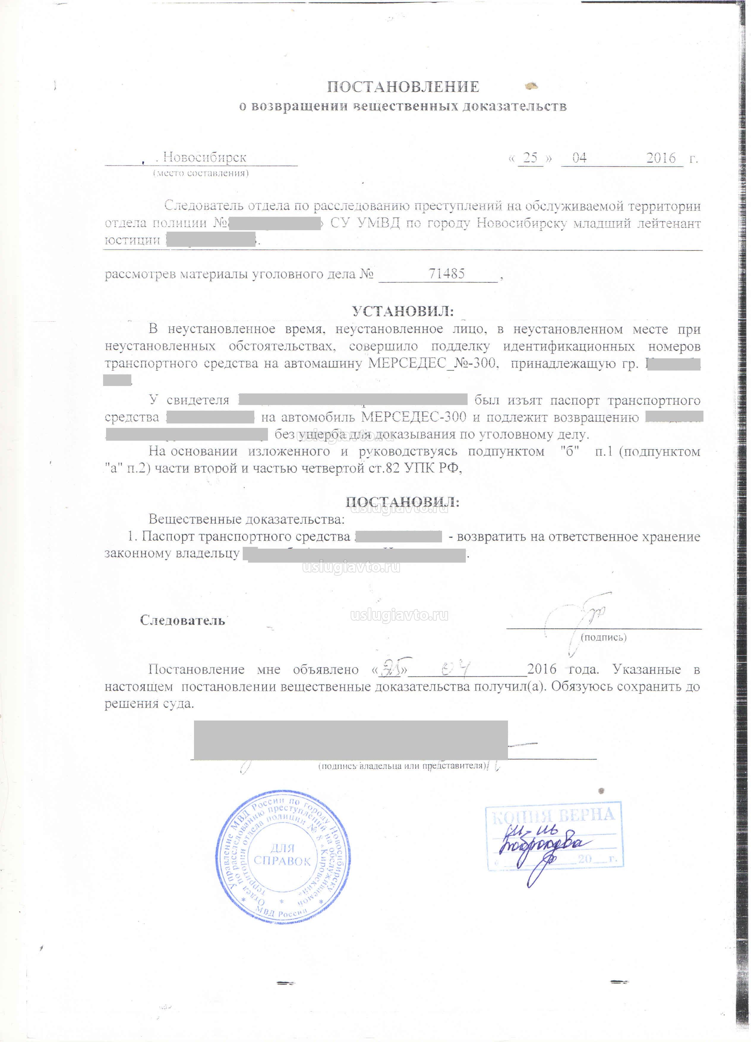 Постановление о возврате вещественных доказательств ПТС.jpg