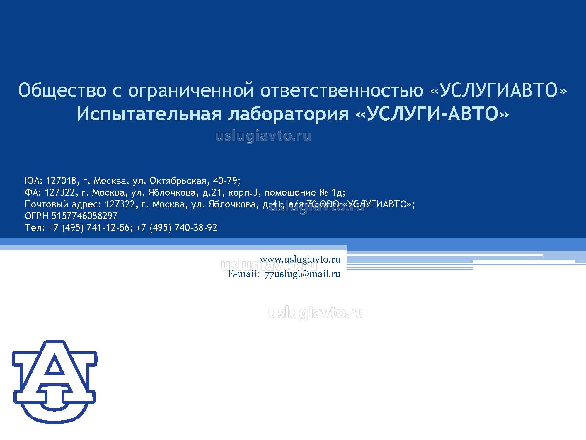 Испытательная лаборатория (ИЛ) действует на базе общества с ограниченной ответственностью "УСЛУГИАВТО".