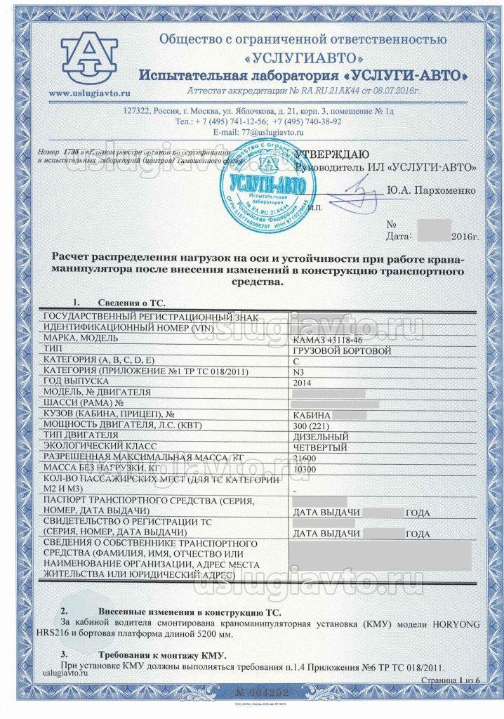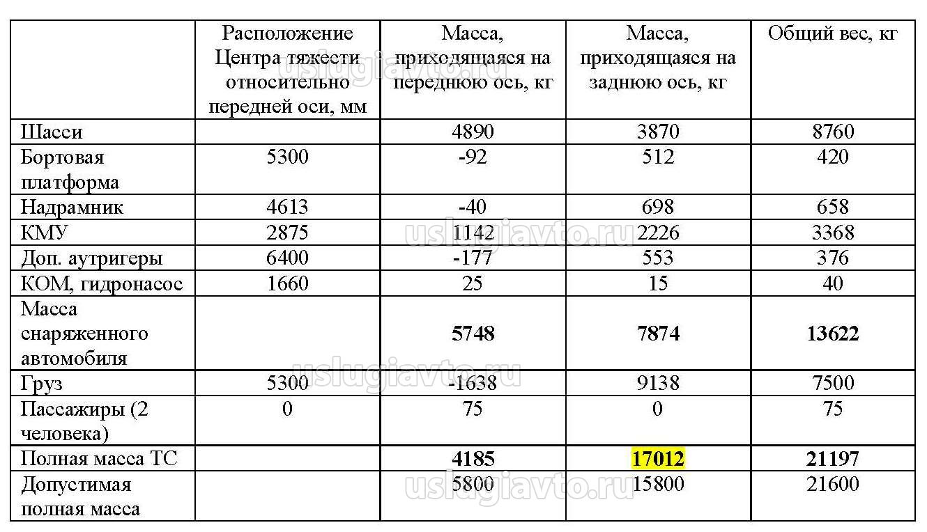 Проанализировав полученные данные, делаем вывод, что установка КМУ HORYONG HRS216 за кабиной и бортовой платформы длиной 5200 мм, не приводит к перегрузке осей ТС КАМАЗ 43118-46 при выполнении следующих условий при перевозке грузов: