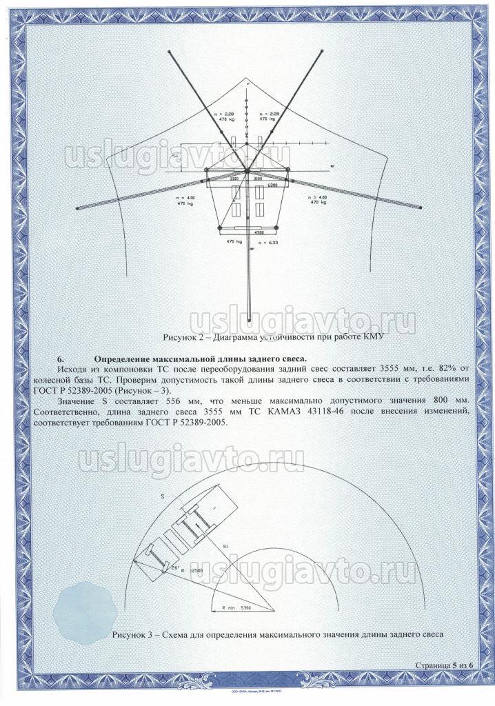 Значение S составляет 556 мм, что меньше максимально допустимого значения 800 мм. Соответственно, длина заднего свеса 3555 мм ТС КАМАЗ 43118-46 после внесения изменений, соответствует требованиям ГОСТ Р 52389-2005.