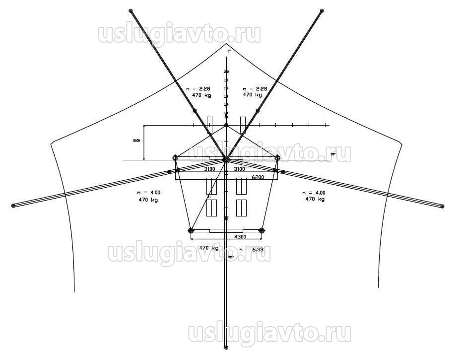 По результатам расчета устойчивости можно сделать вывод, что размаха штатных аутригеров (6200 мм) и дополнительных (4300 мм) достаточно для обеспечения устойчивости ТС при работе КМУ во всей рабочей зоне.