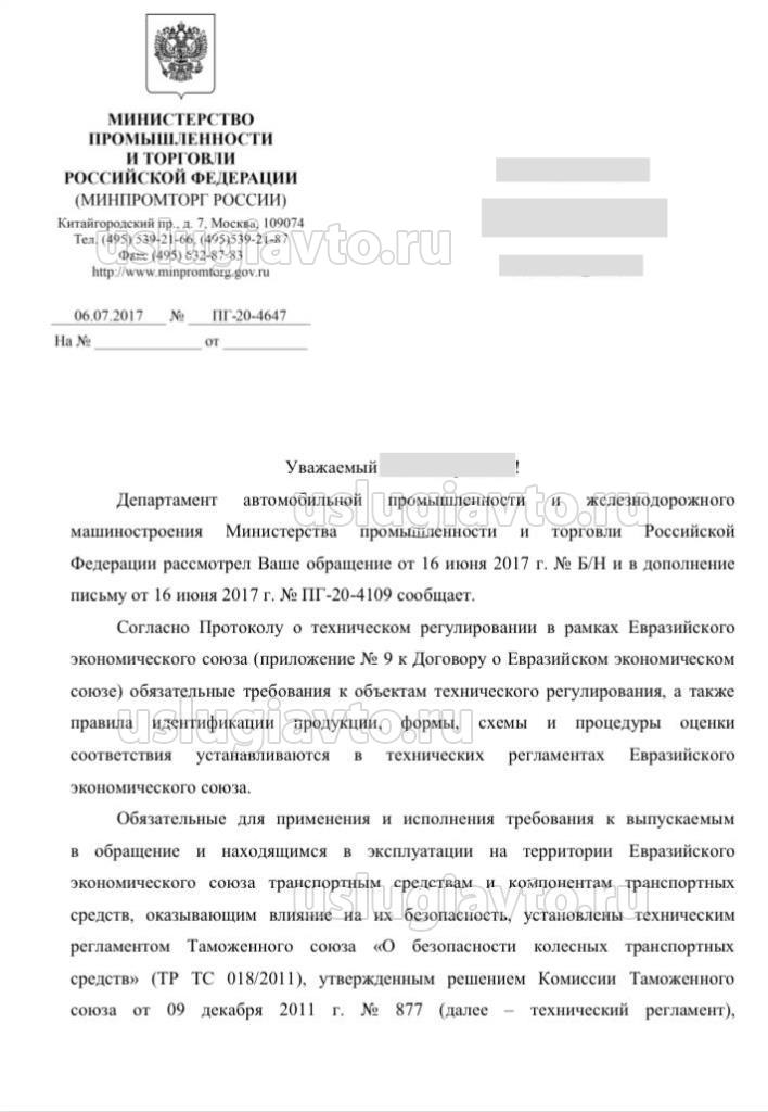 Разъяснение Минпромторга России от 9.12.2016 г. статьи 4 раздела V технического регламента "О безопасности колесных транспортных средств" (ТР ТС 018/2011)