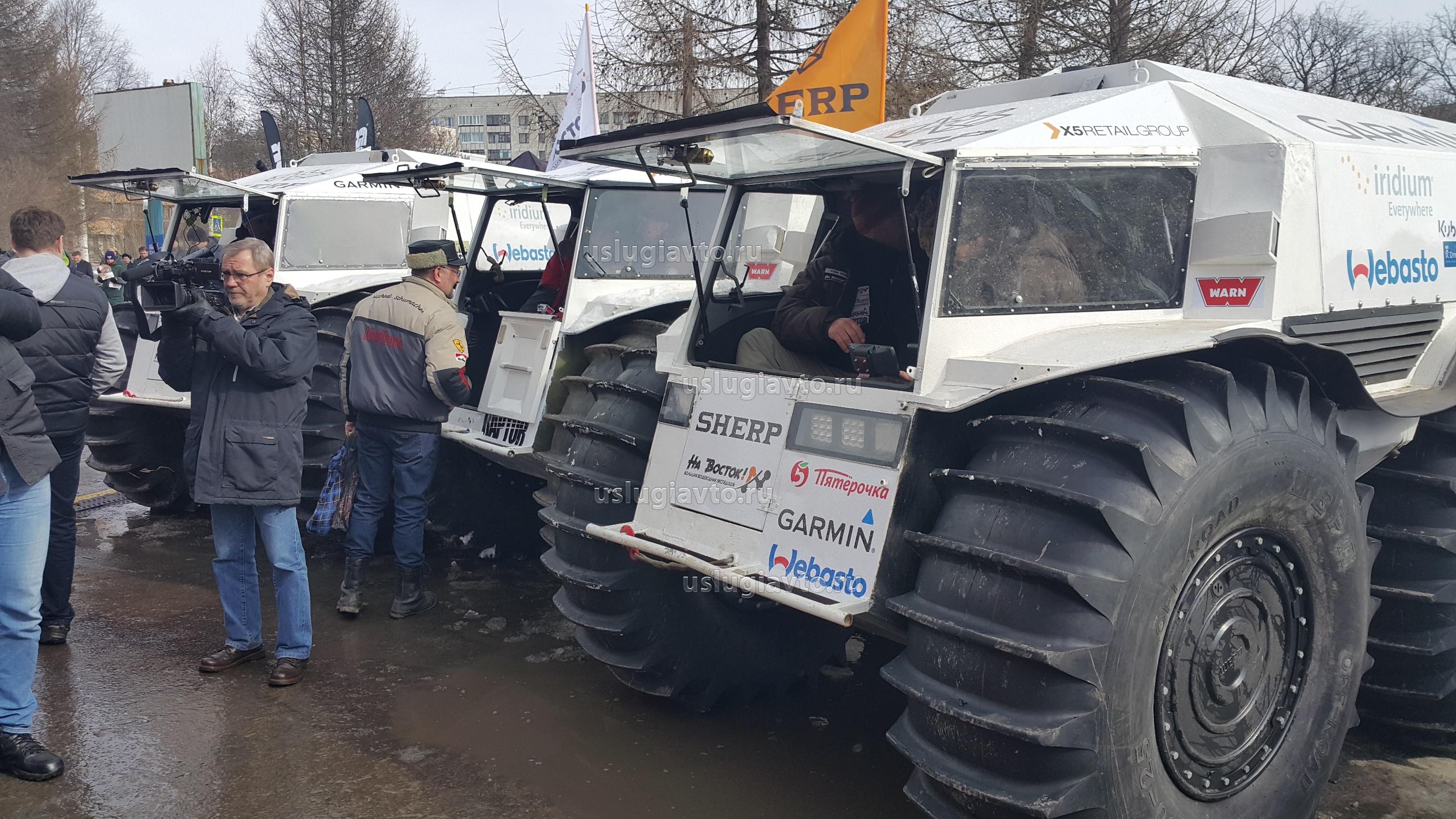 Техника передвижения по маршруту - три вездехода "ШЕРП" и один экспериментальный вездеход уникальной конструкции.