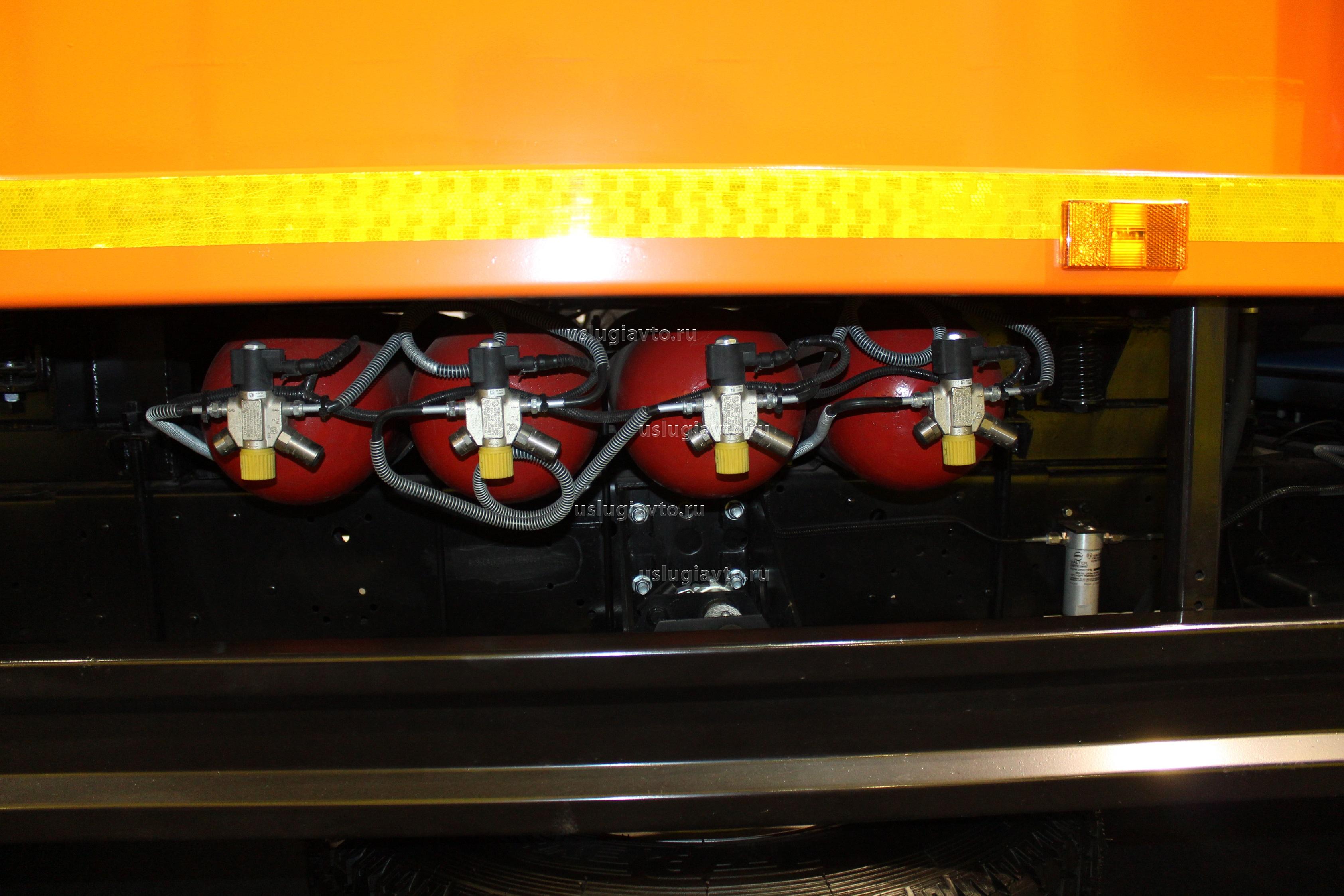 В общей сложности 7 баллонов - на фото видно 4, еще 3 - под кузовом, между лонжеронами рамы