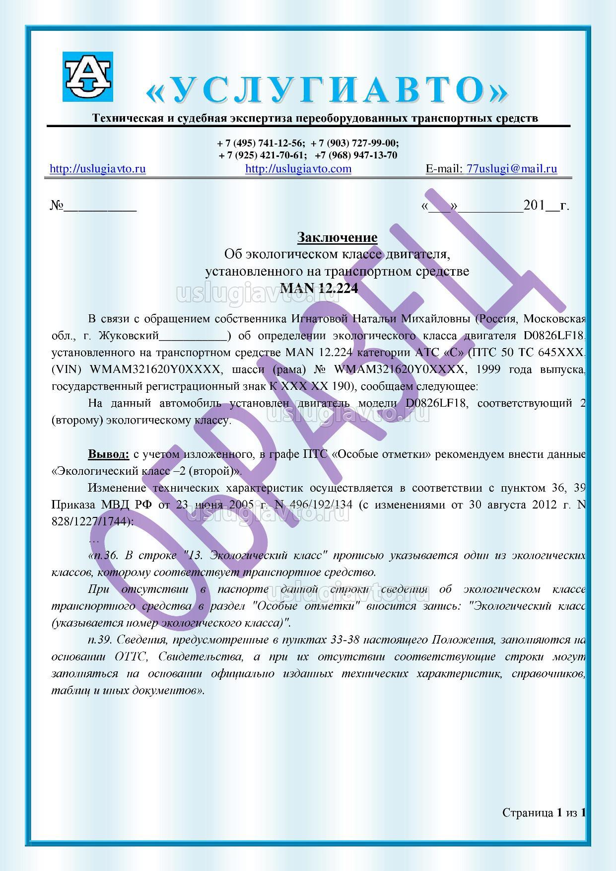 Заключение об экологическом классе двигателя страница 1