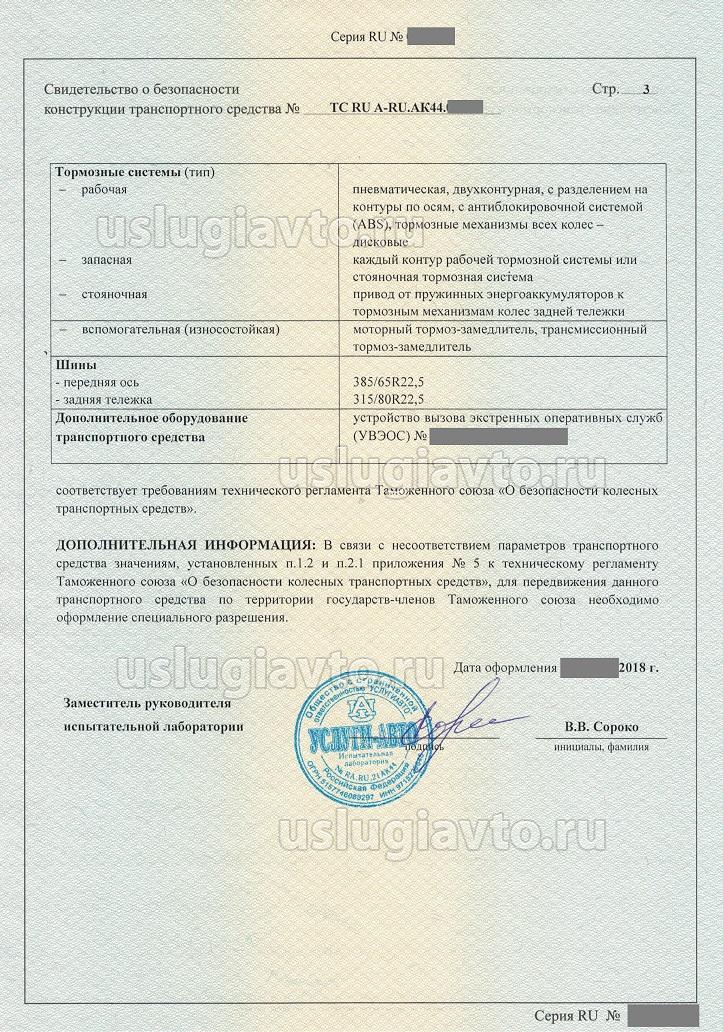 Аккредитованная испытательная лаборатория выдает СБКТС по результатам проведения технической экспертизы конструкции транспортного средства.
