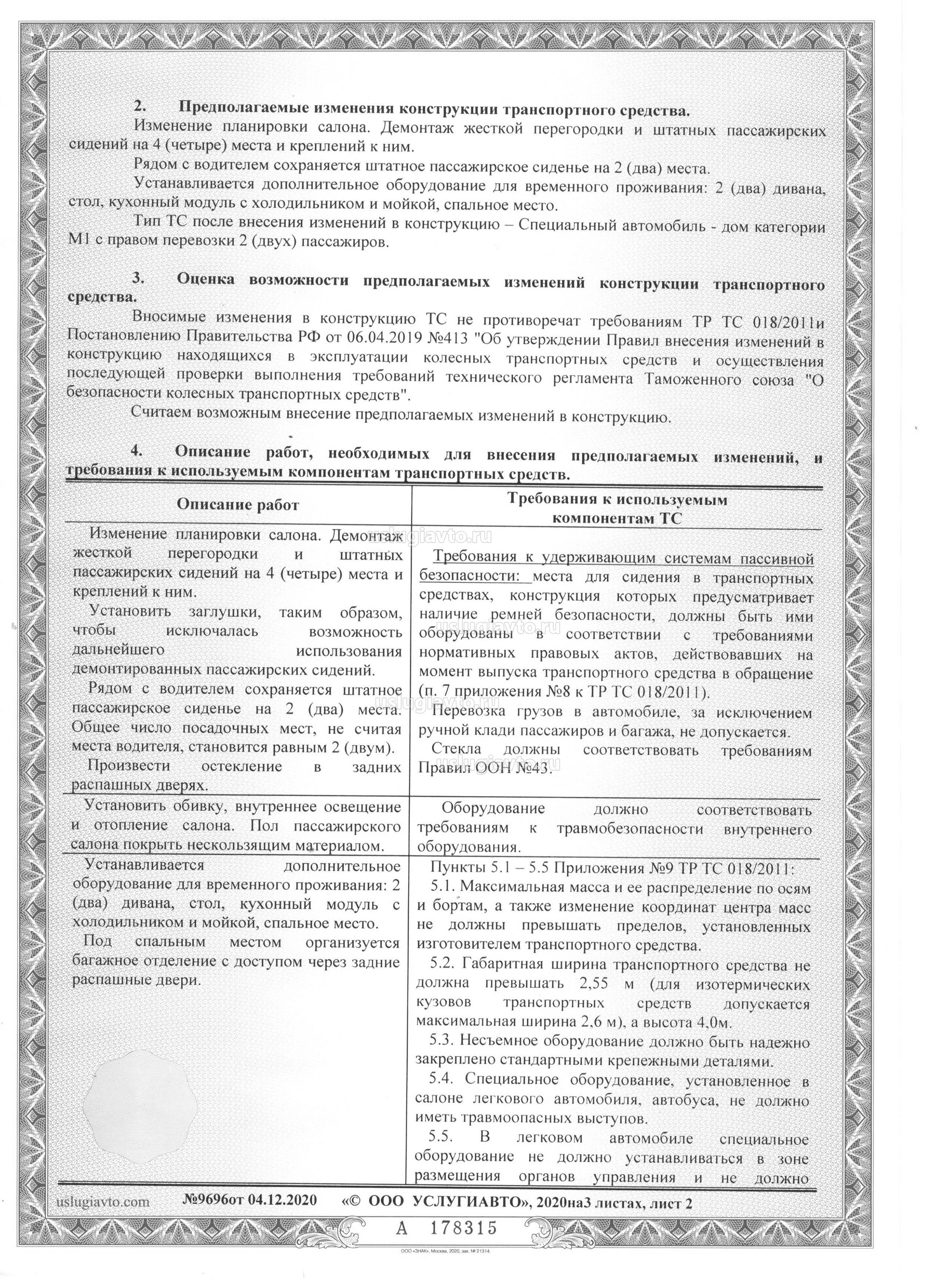 69.6. Наличие в заключении сведений о планируемых изменениях конструкции транспортного средства, которые повлекут проведение его оценки соответствия согласно требованиям раздела 2 главы V технического регламента и следующие изменения: