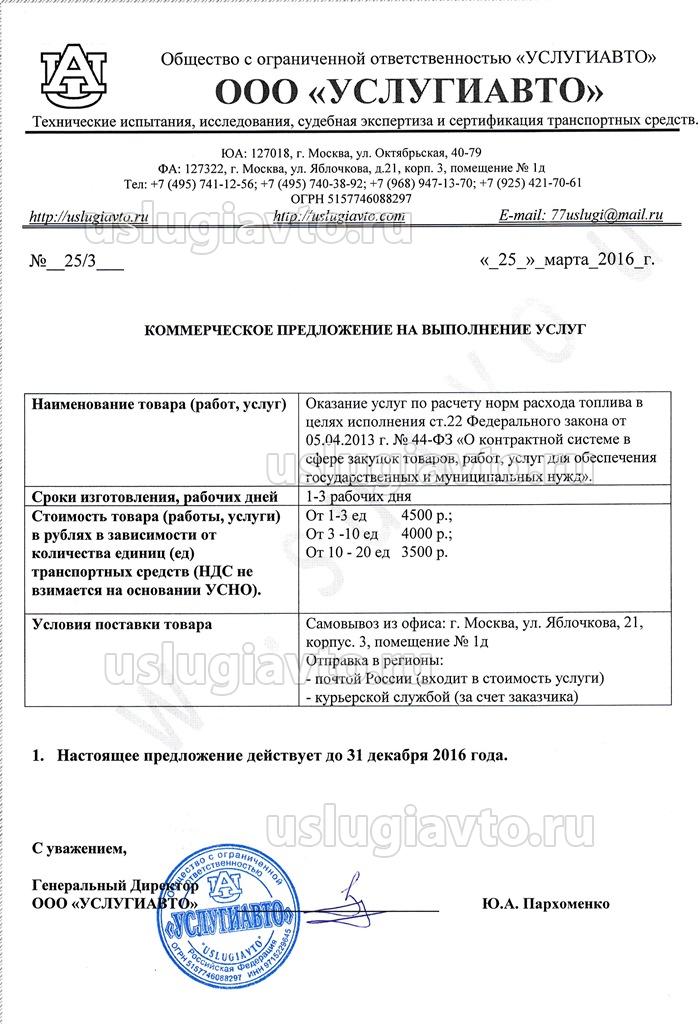 Коммерческое предложение: "Расчет норм расхода топлива"